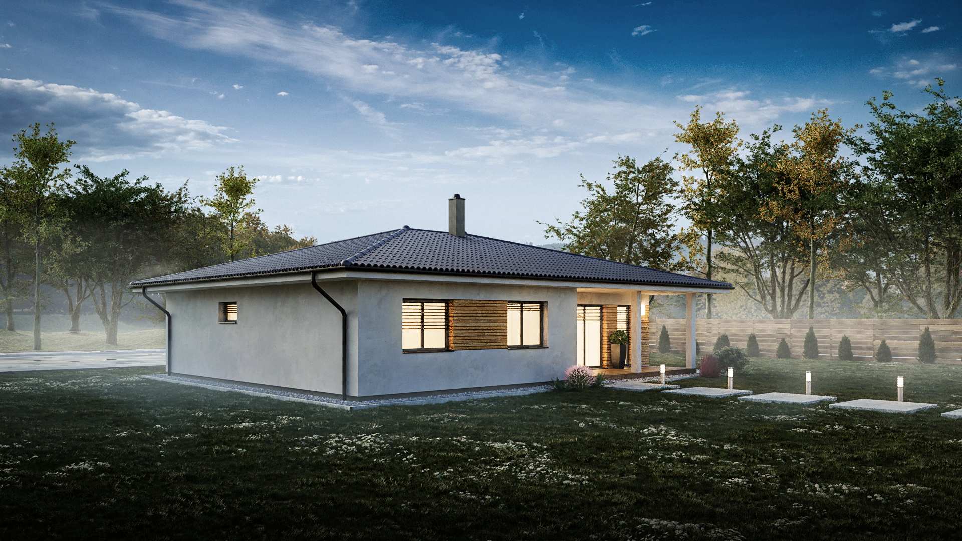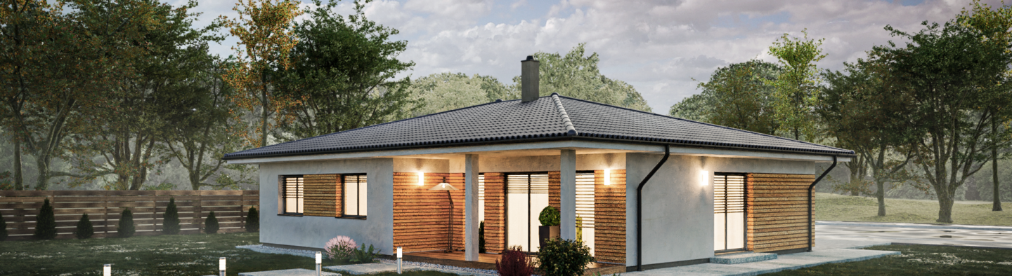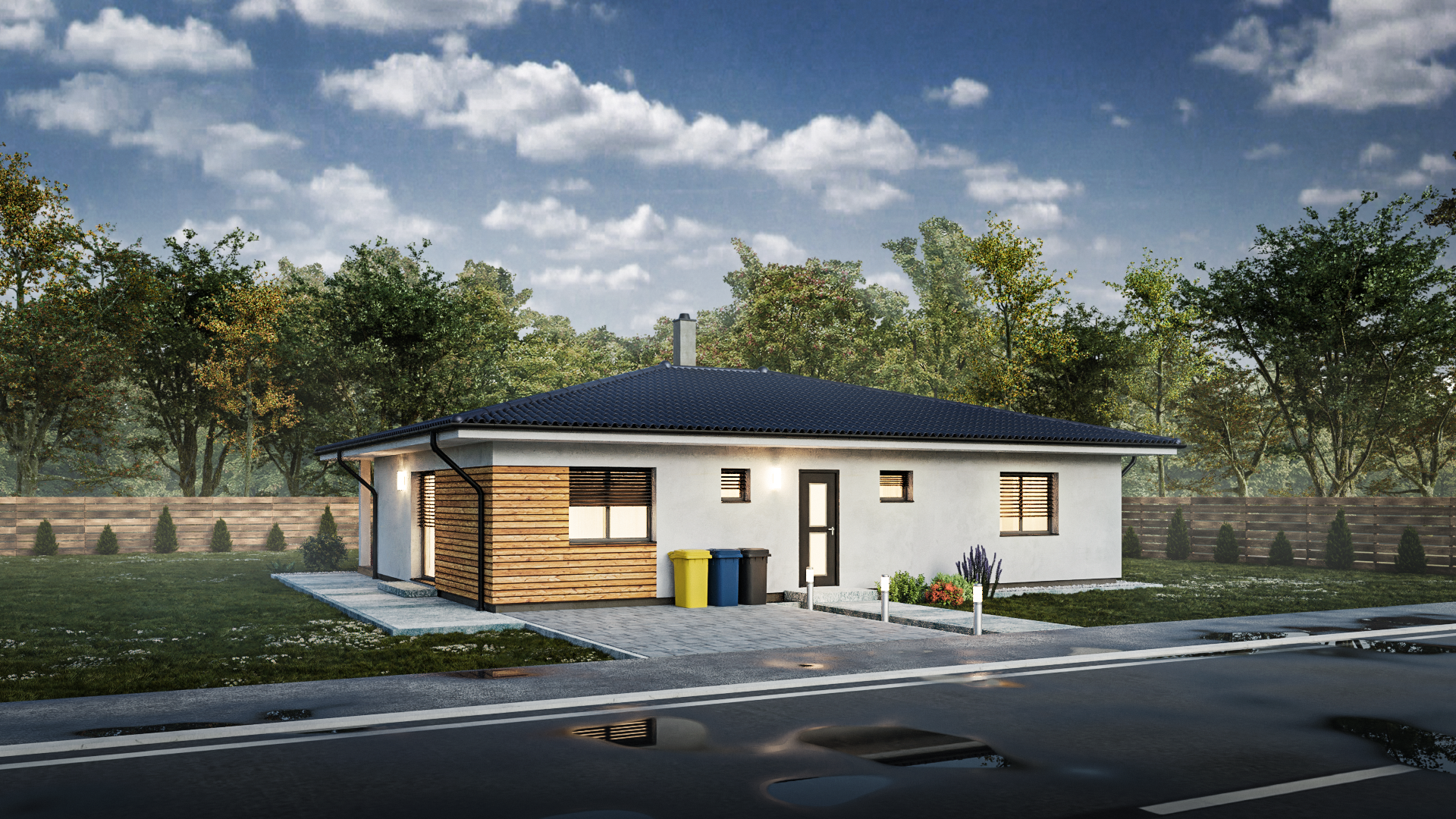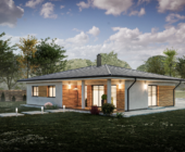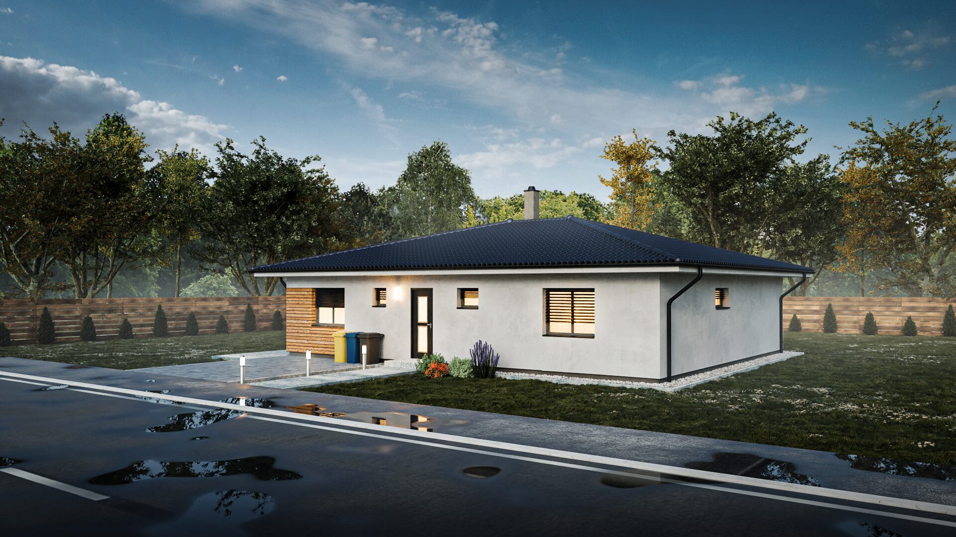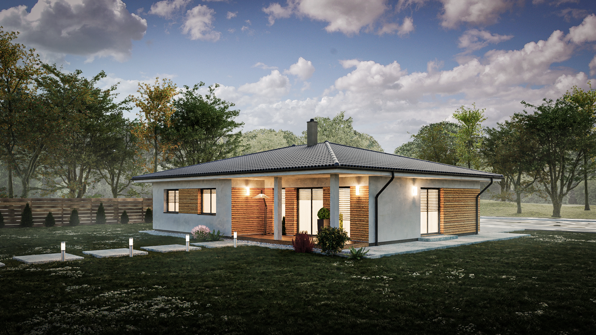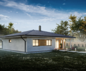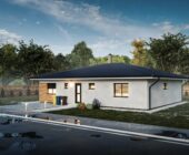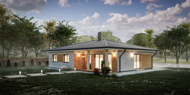 Ak máte pozemok s väčšou rozlohou a plánujete na ňom postaviť bungalov, možno vás osloví práve tento projekt. Katalógový Bungalov 4 je medzi zákazníkmi veľmi obľúbený. Jeho premyslená dispozícia ponúka veľkorysý priestor na bývanie a disponuje aj prestrešenou terasou, ktorá vám poskytne priestor na spoločné raňajky alebo relax po náročnom dni v práci. Nočná časť domu ponúka tri spálne a veľkým plusom v dome je aj samostatný šatník. Mužské osadenstvo domu určite ocení aj samostatnú technickú miestnosť a samozrejmosťou je kuchyňa prepojená s obývačkou.