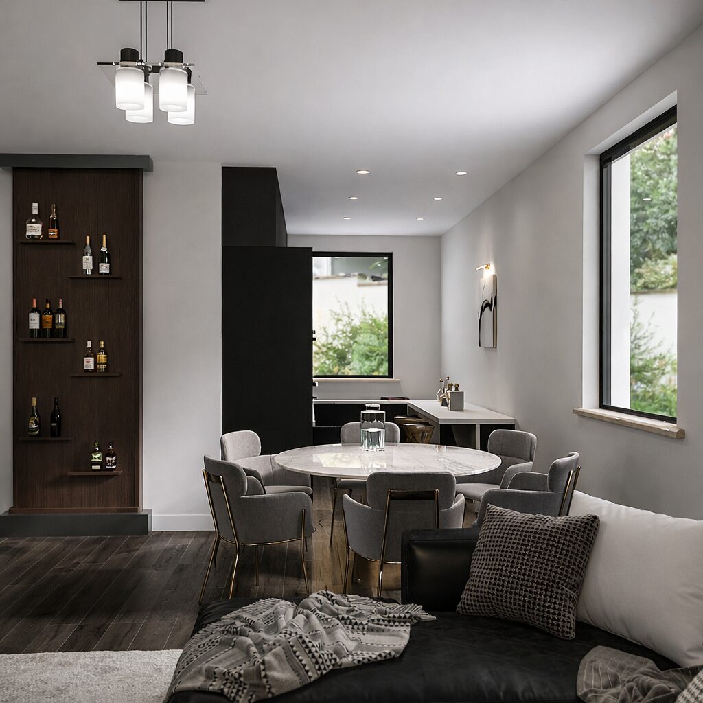 11 x 11. Toto sú vonkajšie rozmery Bungalovu 5 so štvorcovým pôdorysom. Dom má jednoduchú valbovú strechu bez akýchkoľvek rušivých výklenkov a prestrešení. V interiéri je jasne zadefinovaná dispozícia s minimom komunikačných chodieb. A práve vďaka týmto vlastnostiam osloví zákazníka, ktorý má rád jednoduchosť, čisté línie, ale hlavne praktickosť. Po odomknutí hlavných vchodových dverí sa ocitneme v zádverí, kde je priestor na vstavanú skriňu a tiež vchod do samostatného WC. Zo zádveria sa presunieme do dennej časti domu, kde sa nachádzajú veľké terasové okná, ktoré vpustia dovnútra dostatok svetla. Na opačnej strane domu sa nachádza spálňa, dve detské izby a kúpeľňa. Medzi detskými izbami sa nachádza tiež samostatný šatník, ktorý sa dá v prípade záujmu zrušiť a v oboch detských izbách tak vznikne dostatočný priestor na vstavané skrine.