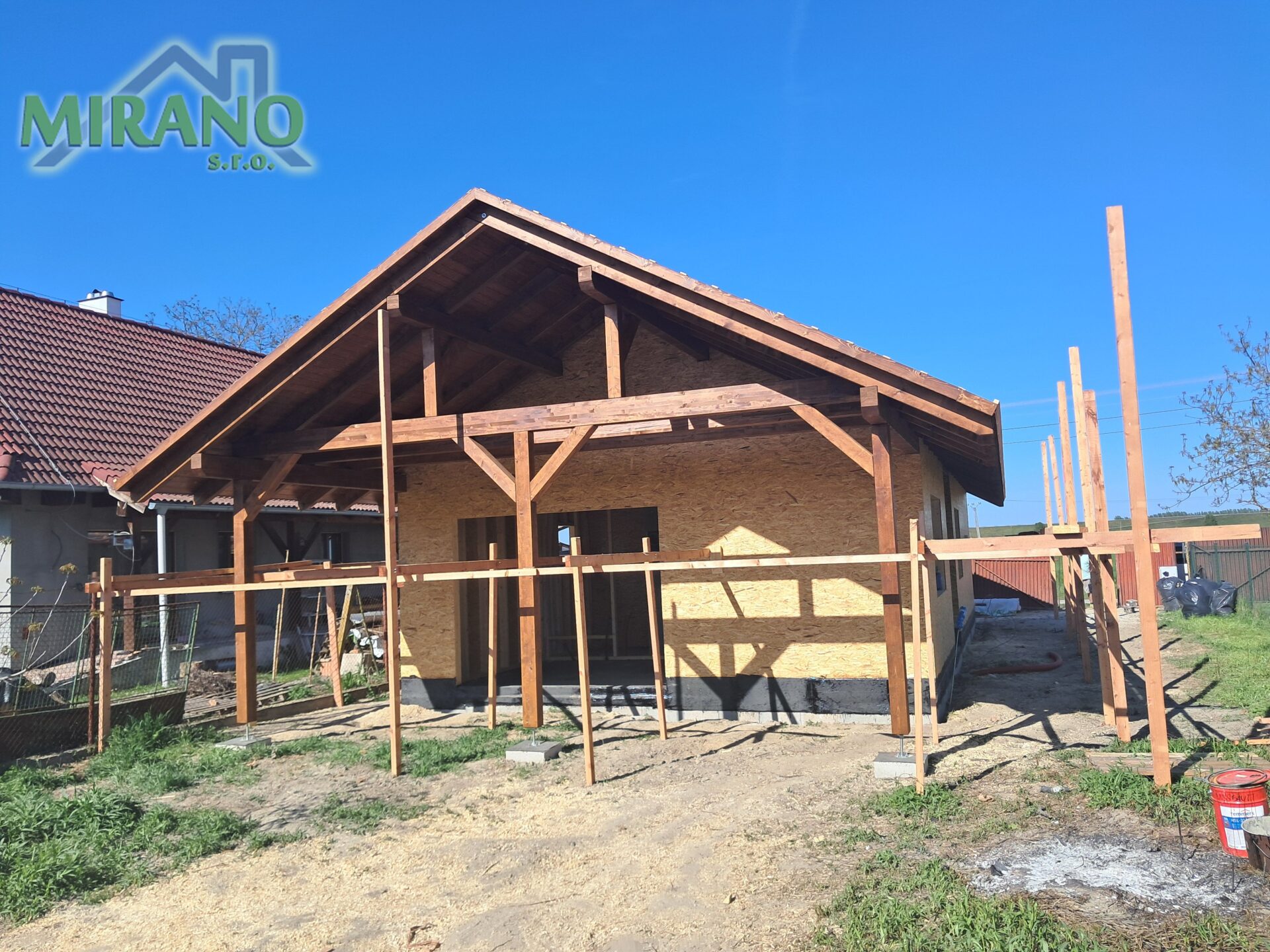 V okrese Dunajská Streda prebehla výstavba hrubej stavby Bungalovu 57. Oproti katalógovému prevedeniu si majiteľ zvolil aj prestrešenie na terase a pred vchodom do domu.